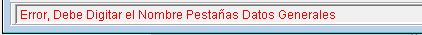 En caso de que se presente alguna inconsistencia en la información digitada se mostraran los mensajes correspondientes indicando el campo que presenta el error de digitación, Ejemplo: