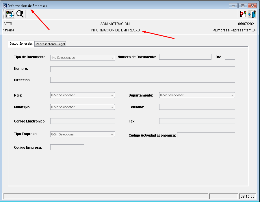 Una vez seleccionada la opción se mostrara la siguiente ventana llamada “Información de Empresas”: