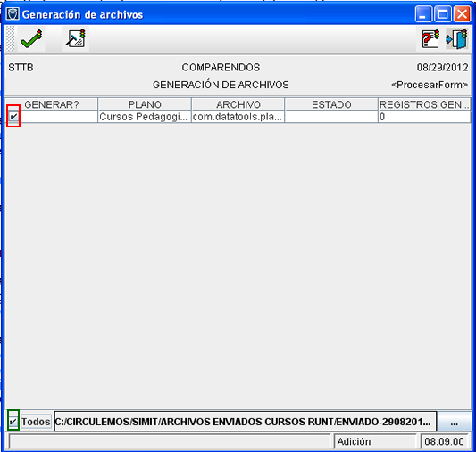 Para poder generar el reporte seguir con los mismos pasos que en el apartado anterior (Reporte de cursos actualizado), pues el procedimiento de creación del archivo es el mismo para todos los diferentes tipos de reporte.