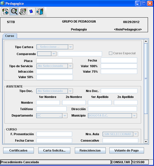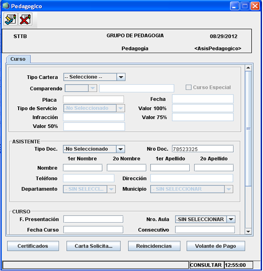 Esta opción permite crear un reporte con toda la información acerca de cursos pedagógicos impartidos por la secretaria de movilidad, a todos aquellos infractores de las normas de tránsito vigentes; Este reporte que se origina desde esta herramienta,