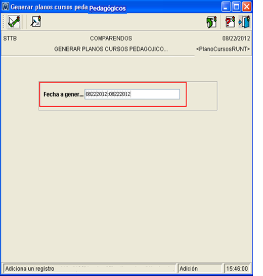 En la nueva ventana que se abre, hacer clic en el botón (Adicionar), para que se habilite el campo “Fecha reporte”, diligenciar la casilla con la fecha del día que se quiere generar el reporte.
