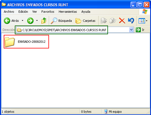 Para verificar el documento, el usuario solo debe dirigirse a la ruta: C:\CIRCULEMOS\SIMIT\ARCHIVOS ENVIADOS CURSOS RUNT\, dentro de la carpeta “ARCHIVOS ENVIADOS CURSOS RUNT”, se podrán observar todos los documentos descargados desde el aplicativo.
